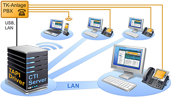 Dabei werden sowohl Telefonanlagen mit zentralem TAPI-Treiber als auch