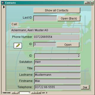 Ein Klick auf den Button [Dial] wählt die Rufnummer aus dem Formularfeld.