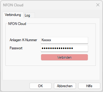 Nach Eingabe von K-Nummer und Passwort klicken Sie auf [Verbinden] und schließen den Dialog mit [OK].