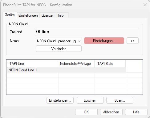 Klicken Sie bei "NFON Cloud" auf den Button [Einstellungen...].